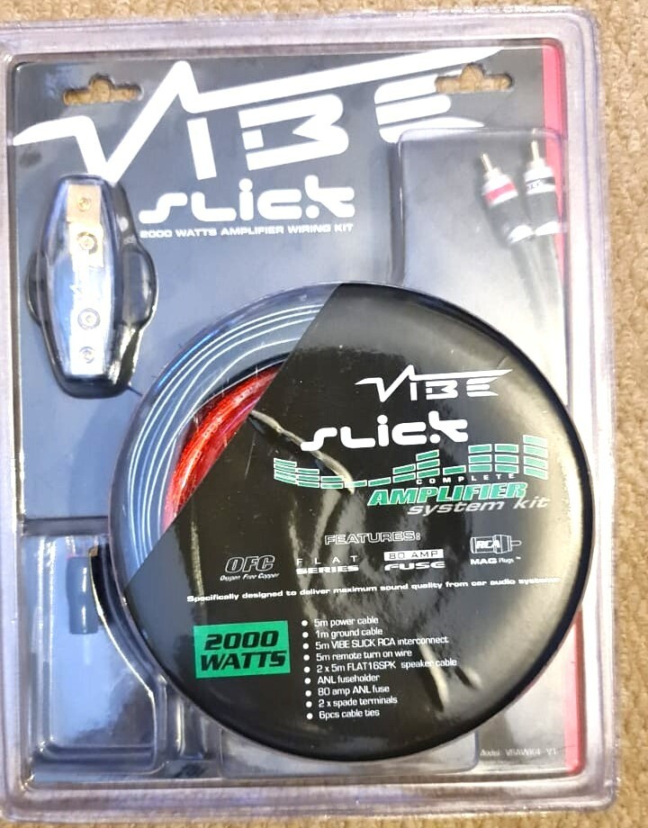 Vibe Slick 4 AWG Gauge VSAWK4-V1 2000W Car Van Audio Amp Amplifier Wiring Kit Condition. The Vibe Slick 2000 Watts System Wiring Kit is specifically designed to gain maximum output from high power full range systems. VIBE Slick Amp Wiring Kit - Black VSAWK8-V1 48 out of 5 stars 16 product ratings Expand.