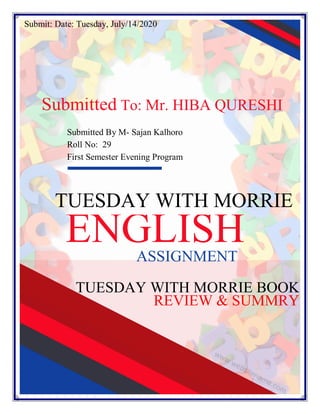 Tuesday With Morrie Book Review Adn Summary Assignment